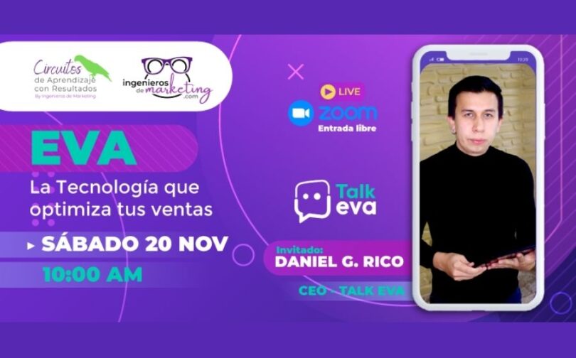 Somos consientes de los esfuerzos digitales que hacemos para la consecución de leads y lo vital de aprender como debemos trabajarlos para potenciar los tiempos y generar conversiones, es por ello que en esta ocasión en nuestro Circuito de Aprendizaje con Resultados Ingenieros de Marketing aprenderemos sobre Eva, la tecnología que nos ayuda a optimizar nuestras ventas, con nuestro invitado especial Daniel González Rico, CEO – Talk Eva, con más de 8 años de experiencia generando impacto en la comunicación.