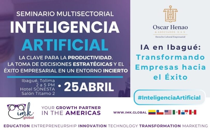 Organizado por Oscar Henao Asociados SAS, líder en consultoría en derecho laboral, y con el destacado speaker Julian Castiblanco, de la prestigiosa empresa IMK Global – Ingenieros de Marketing, este evento promete ofrecer una perspectiva profunda y práctica sobre cómo aprovechar al máximo el potencial de la IA en el ámbito empresarial.